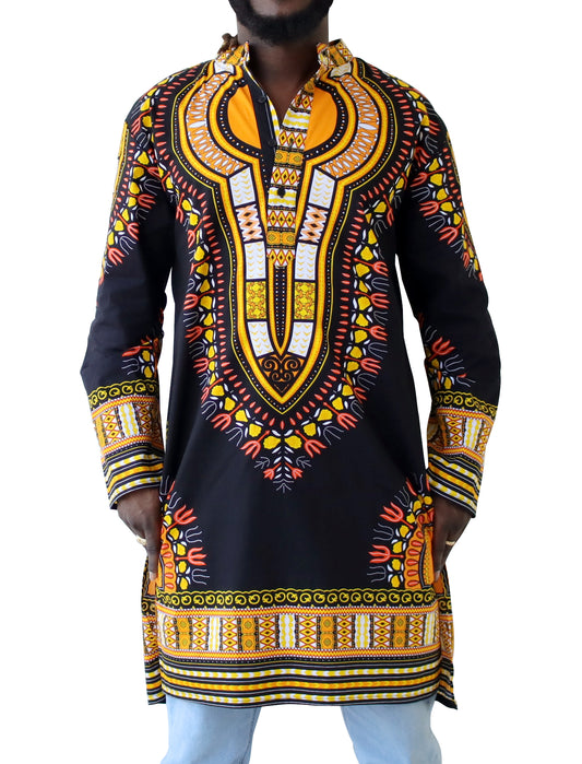 African Dashiki Unisex Shirt Standard Cotton 100% - Bold Black