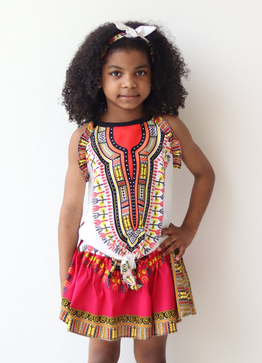 Africa Dashiki Girls Shirt - Light Sleeveless tie front