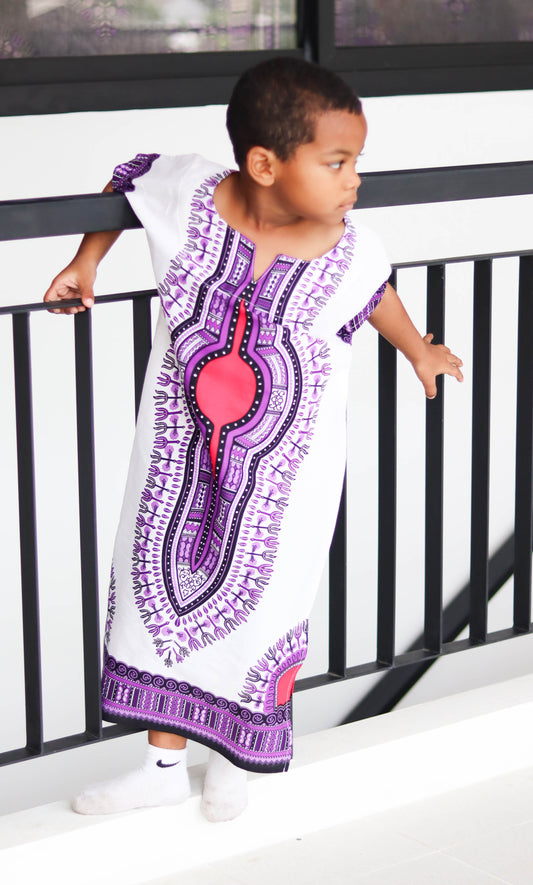 Cotton Childrens African Dashiki Throw Over Boubou Shirt Large Print and Pockets