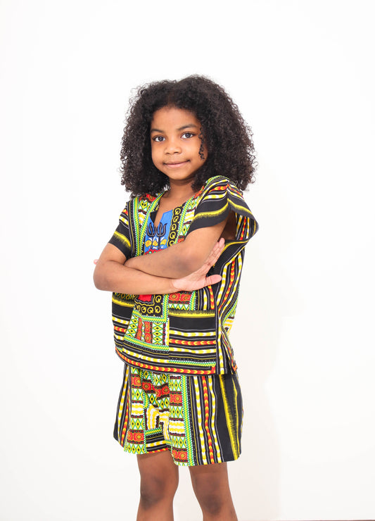 Childrens Unisex Afrikan Cotton Patch Short and Shirt Dashiki Outfit