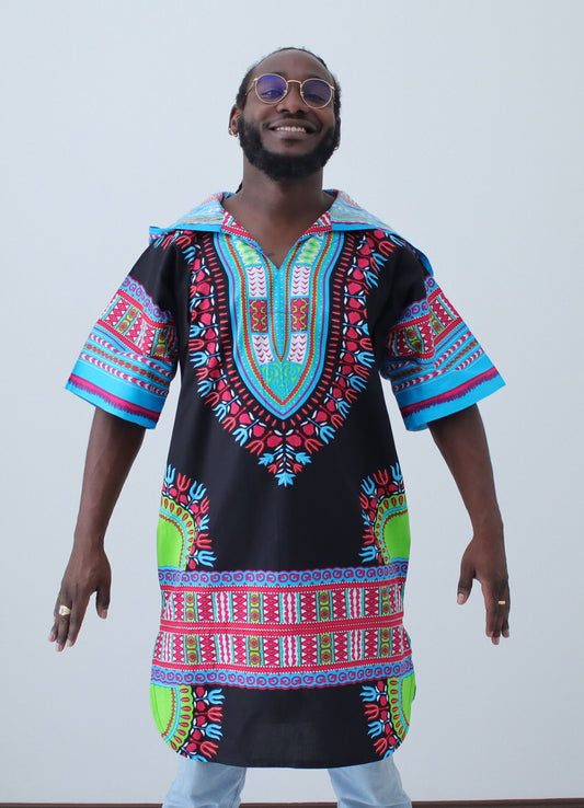 African Dashiki Unisex Shirt - Black Windbreaker Hoody Short Sleeve