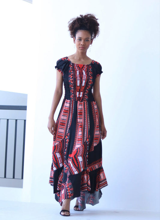 Africa Dashiki Dress - Smock Waist With Short Sleeves