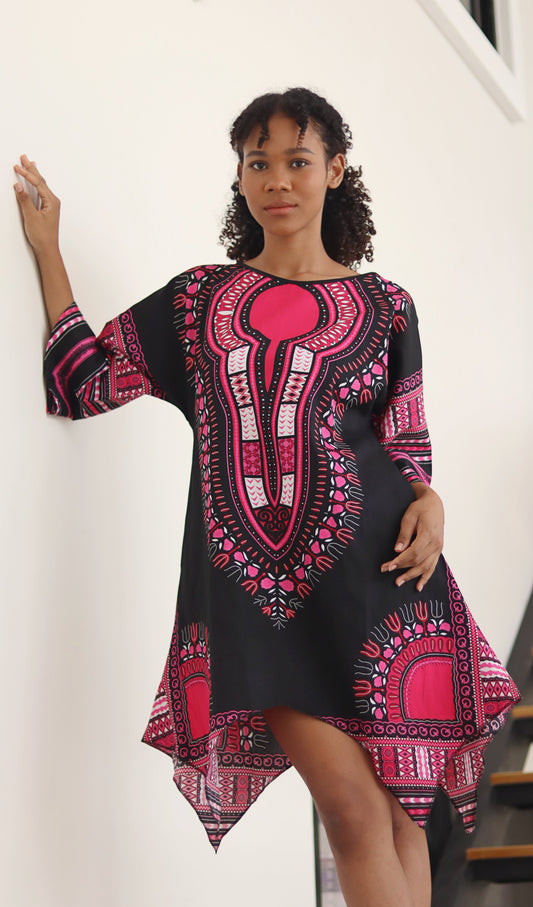 African Dashiki Mini Dress - Pocket side with Zipper Back