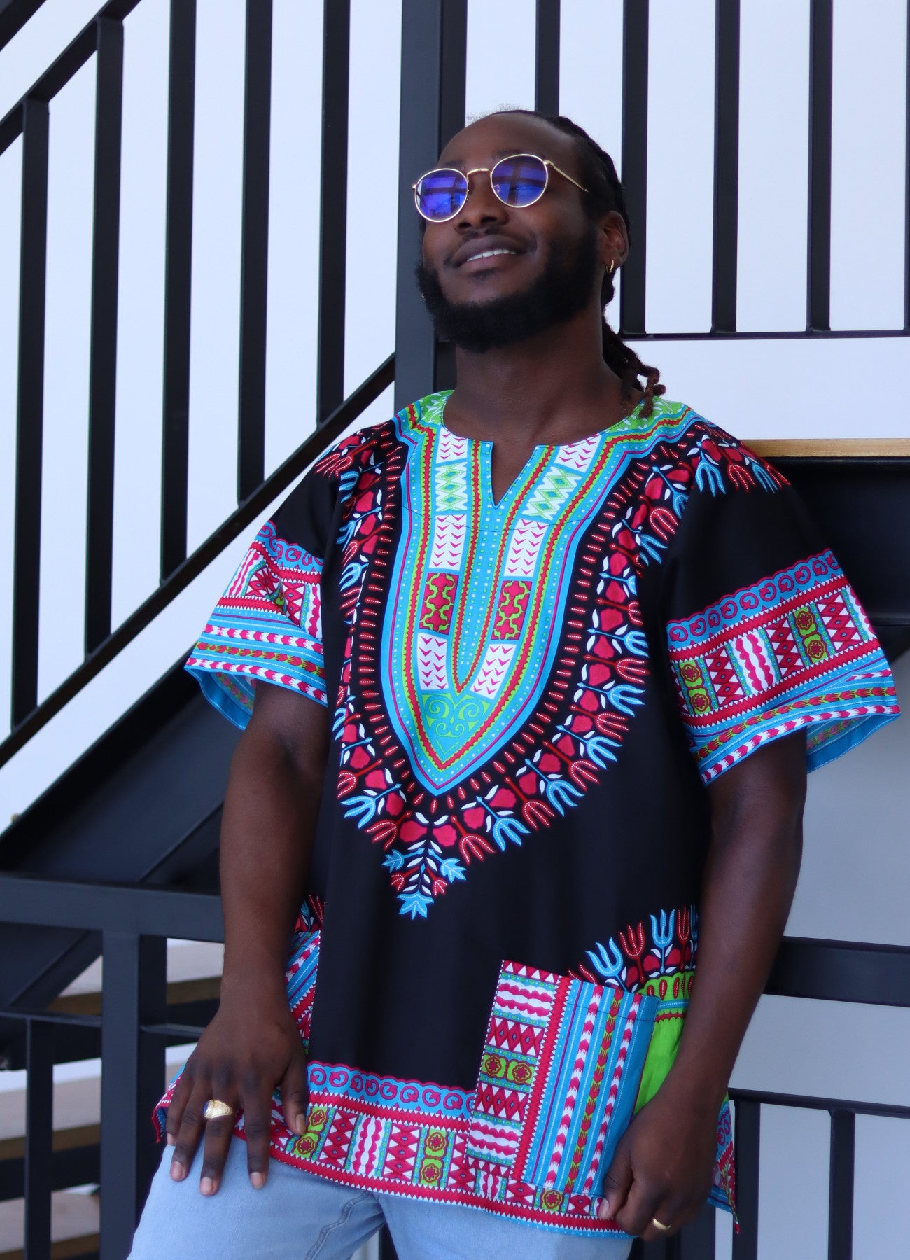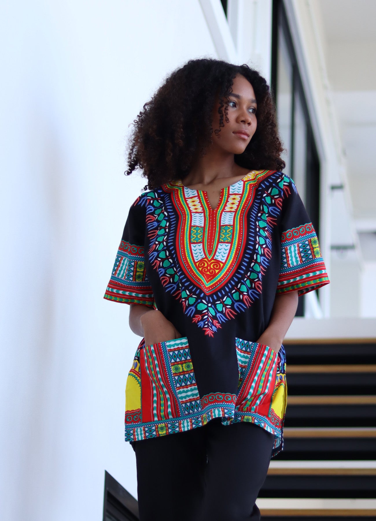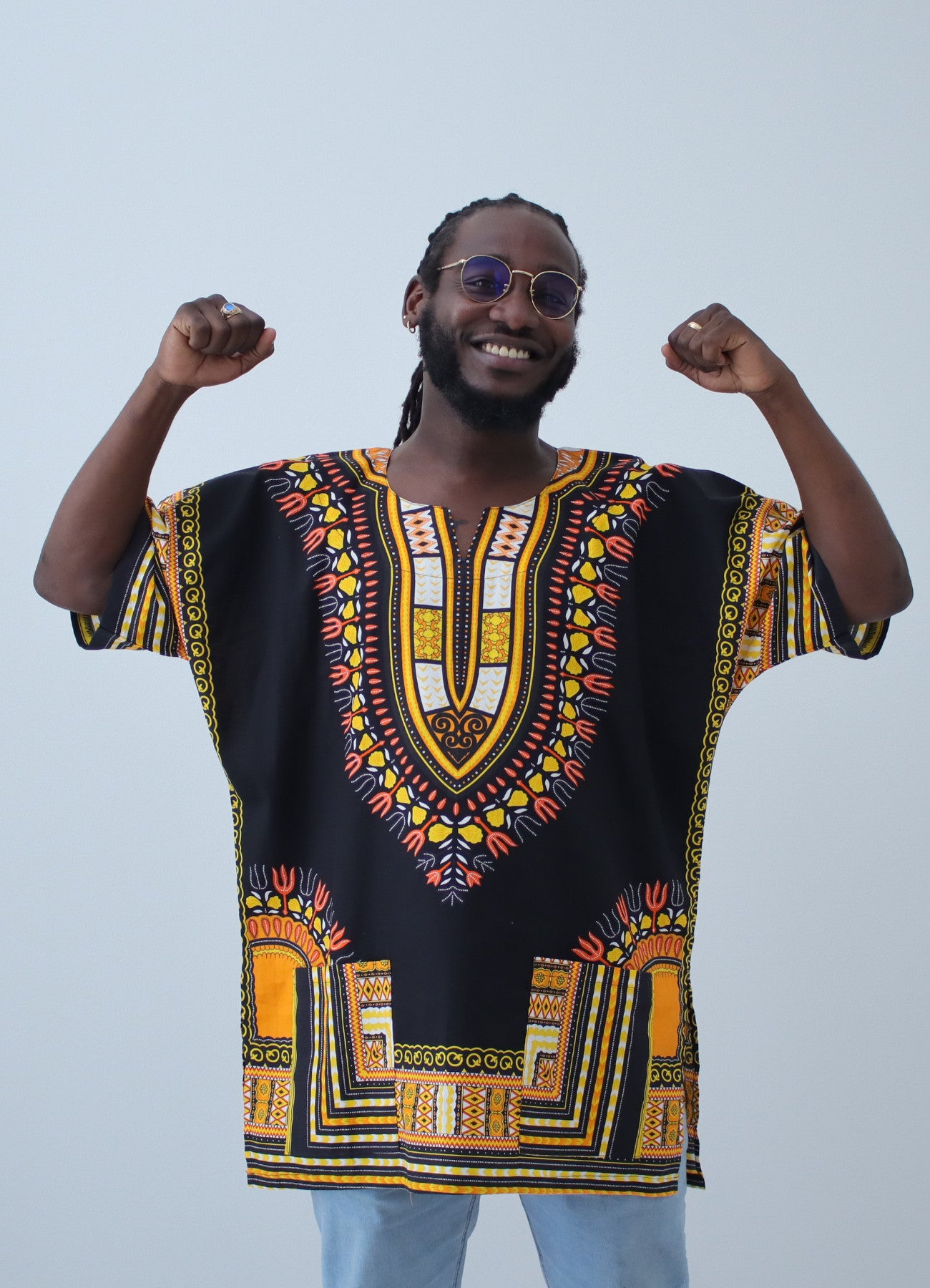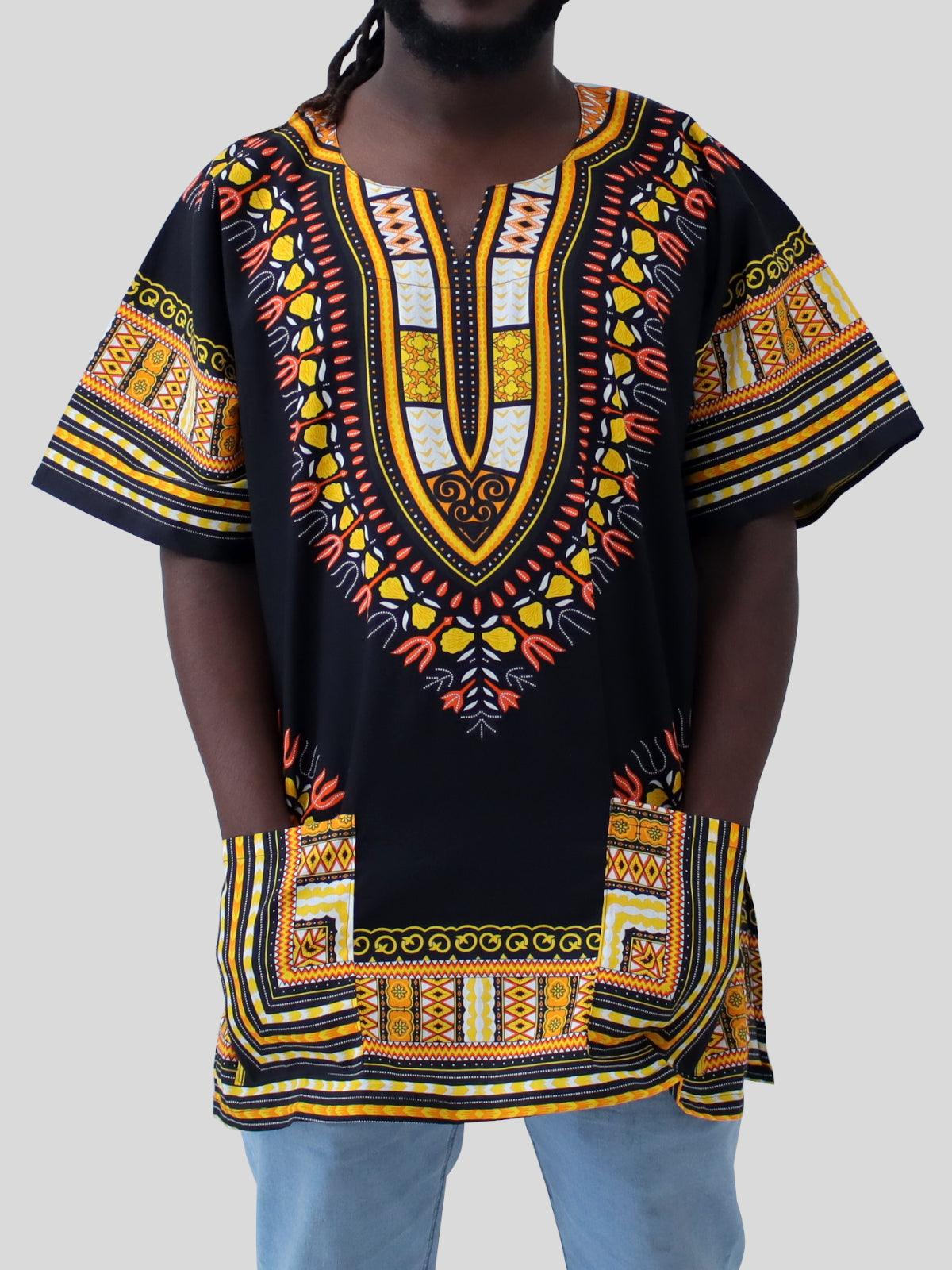 African Dashiki Unisex Shirt Standard Cotton 100% - Bold Black