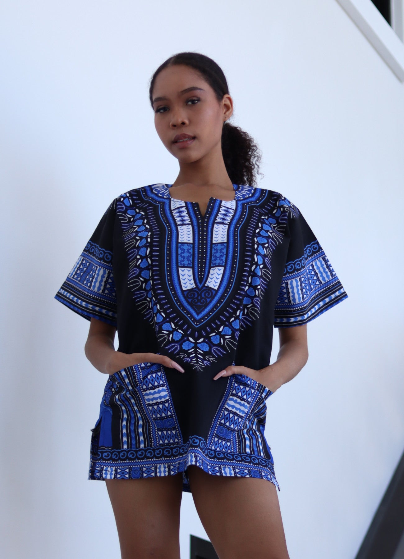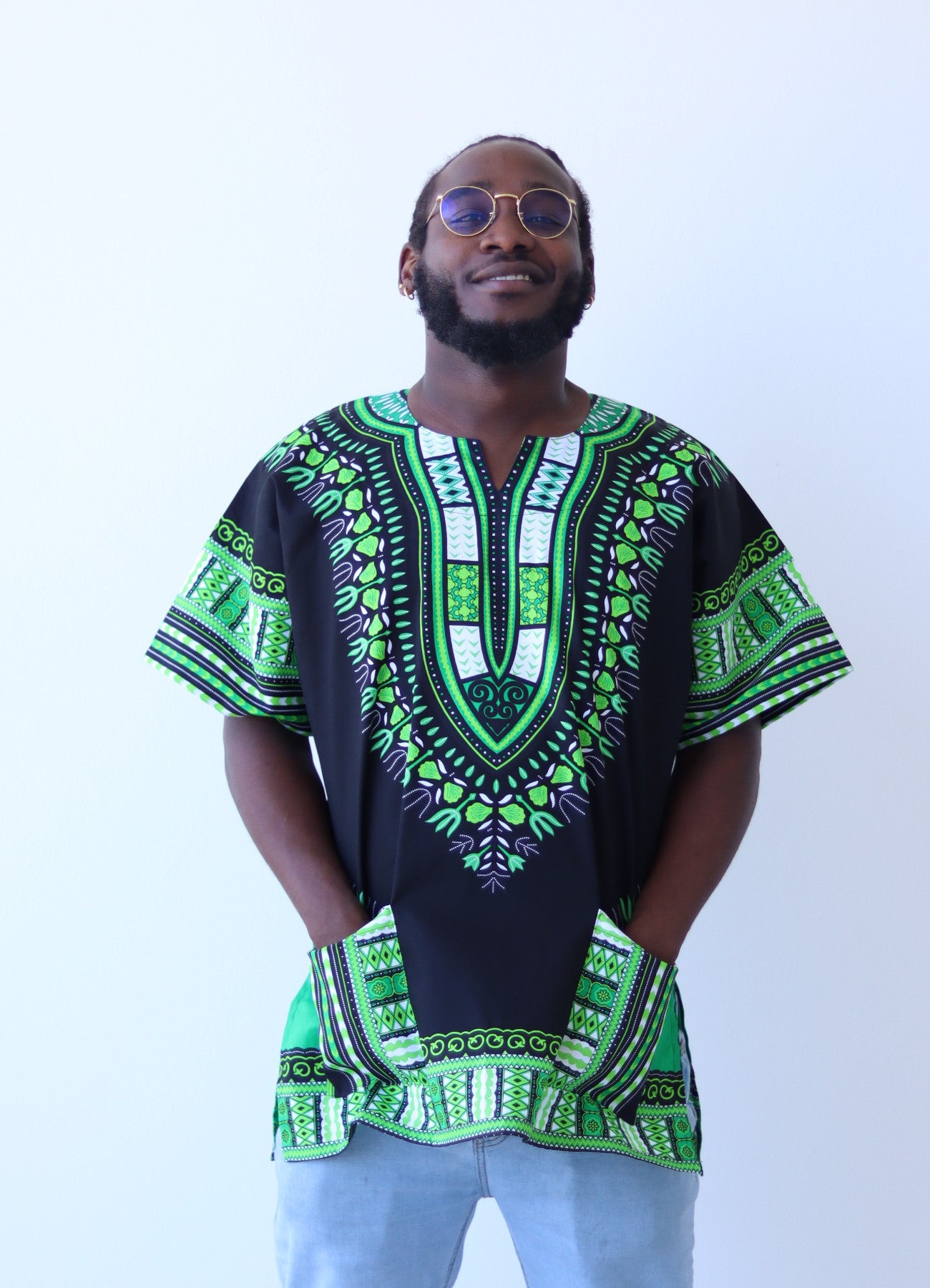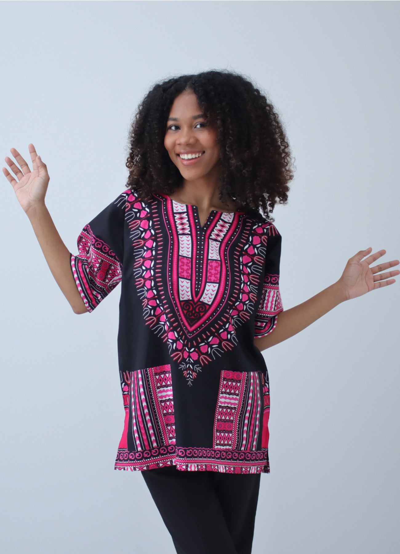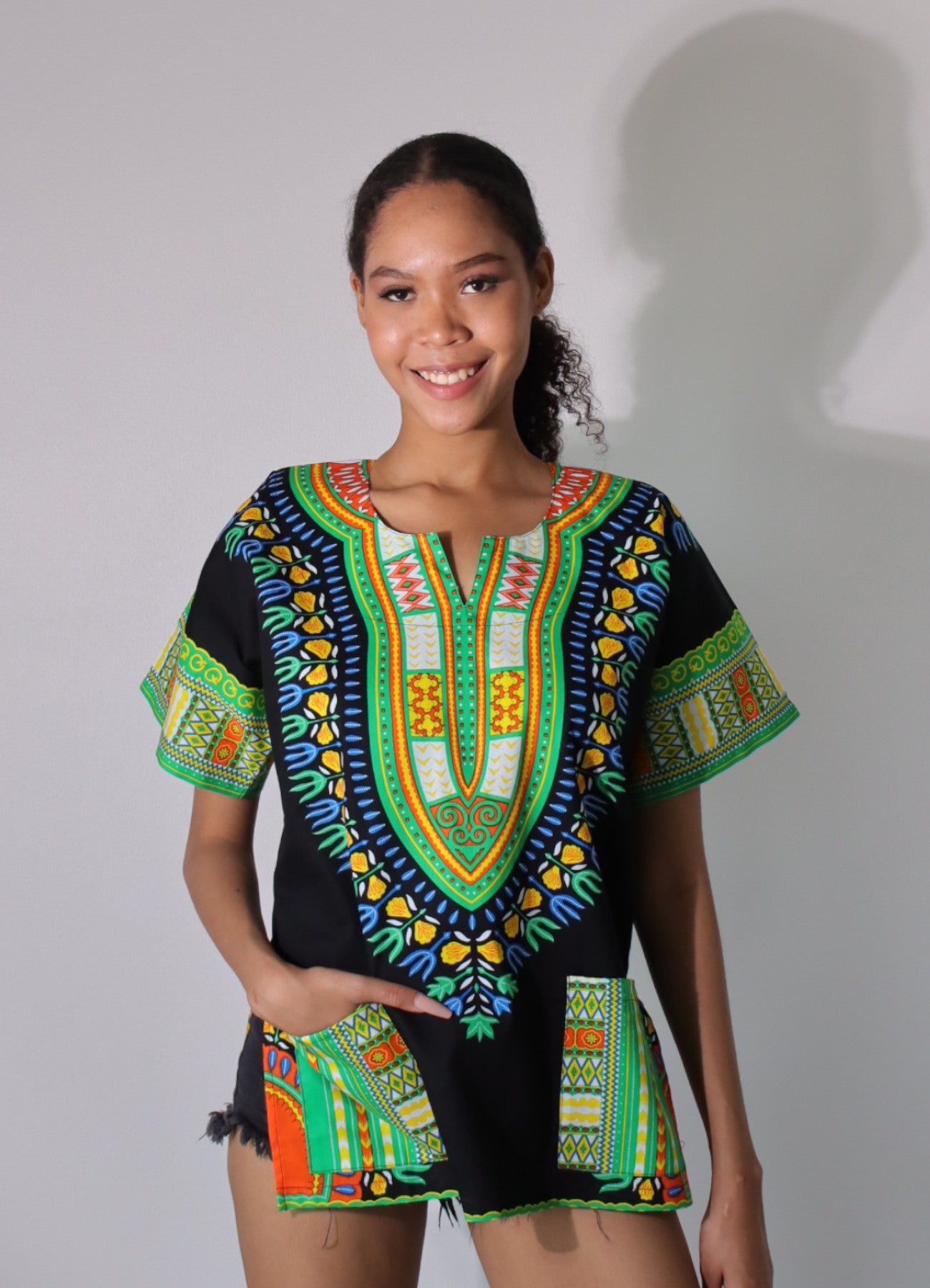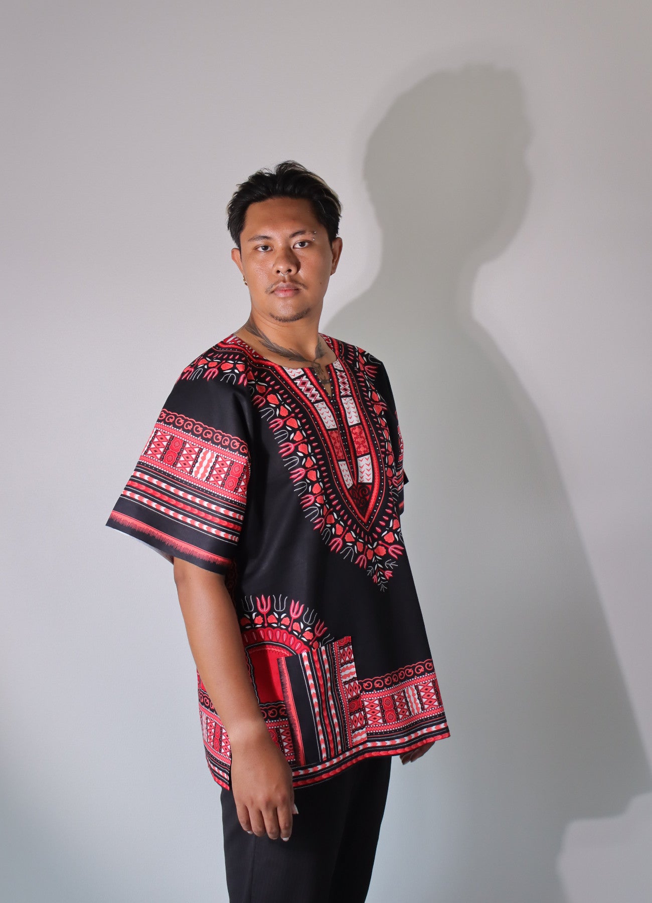 African Dashiki Unisex Shirt Standard Cotton 100% - Bold Black