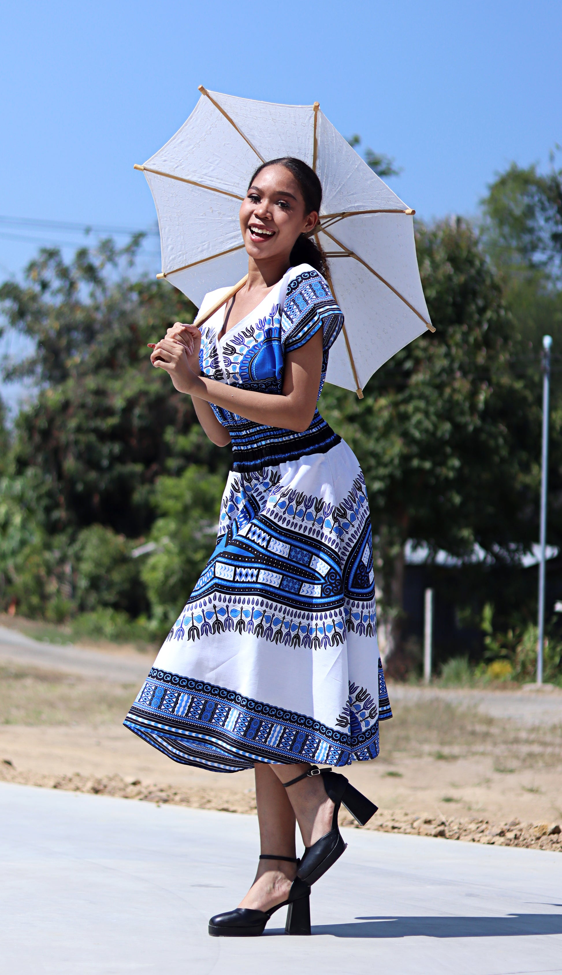 African Dashiki Dress - Round V Collar Smock Waist Colours
