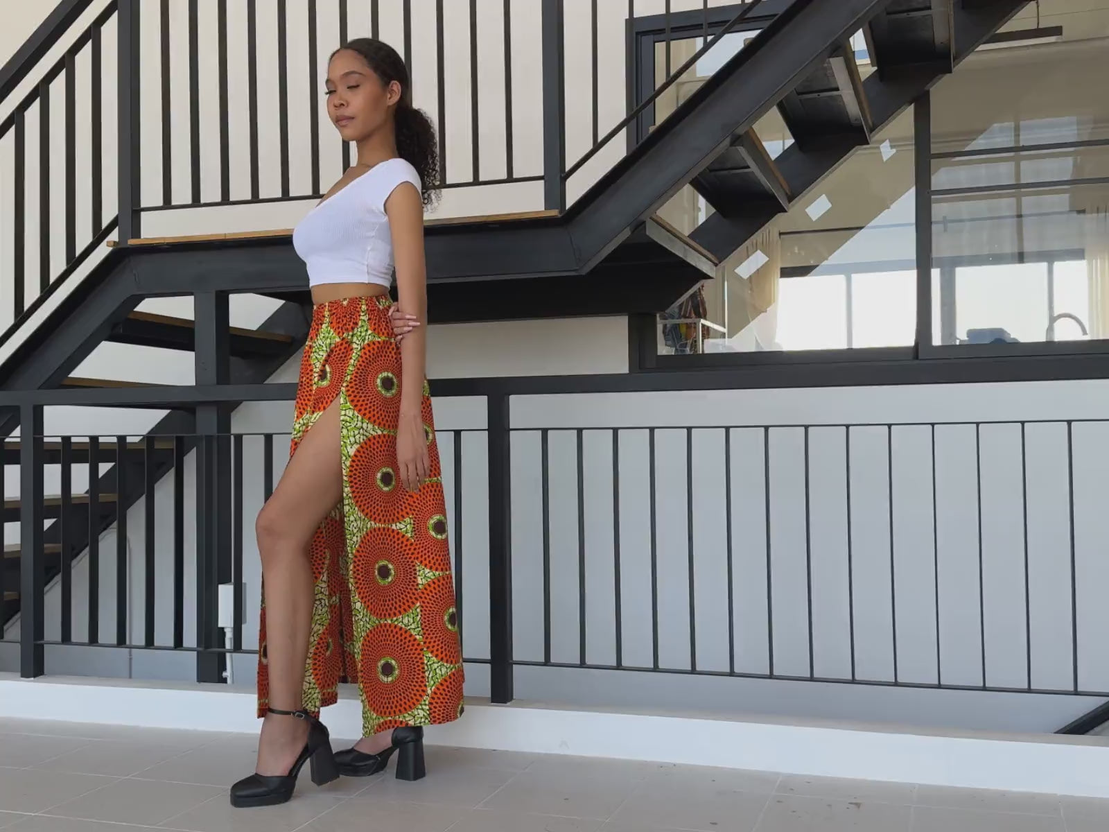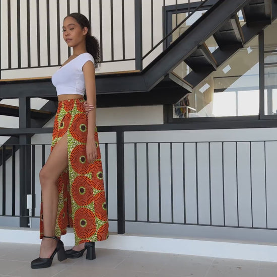 African Dashiki Skirt Side Slit - Kente Ankara Art Print Elastic Waist Dance Skirt
